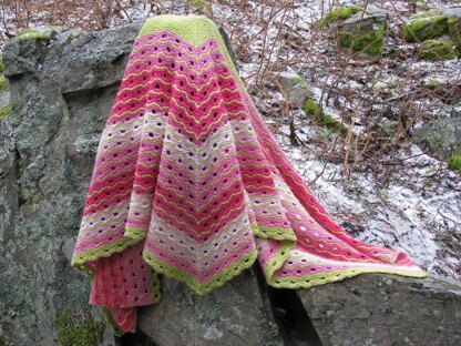 Lots of lovely crispy layers, in a delicious confection of colour, and entirely calorie-free! Try both the scarf and the shawl versions, they grow fast on account of all the lovely bubbles.