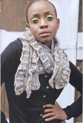 Worked length ways in garter stitch. Stitches are then picked up to work two pretty lace sections.