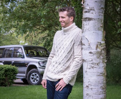 A stylish casual wear man’s jumper which uses various techniques including quite a complicated cable pattern, short row shaping and three needle cast off. The body is knitted in two pieces, the sleeves and neck in the round. I have also made one in black and I changed the roll neck to a smaller needle. Liking it better, I have changed the neck on the pattern too so it’s a tighter stitch than the image shown in ivory. If you prefer the looser stitch, don’t change needle size.