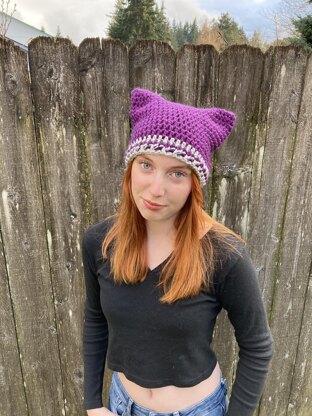 This fun cat-ear beanie is worked from the top down and in the round, finished with fun color and texture details! Additional color stripes can be added if desired for a colorful custom look. The length can be adjusted as needed, but this hat style should fit with no slouch in order for the ears to stand up properly.