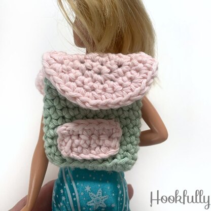 This mini backpack crochet pattern can be used as a keychain or as a bag for 12 inch dolls to wear. The doll backpack crochet pattern is easy skill level and is written in USA terminology. You will need to know basic crochet stitches, know how to work into back loop only and have sewing skills. The pattern is 4 pages long and includes progress photos. Finished size of the mini bag is width 2.25" x height: 2.75".