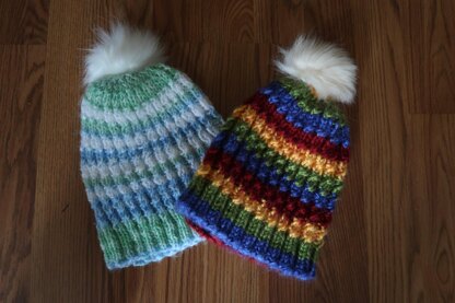 This is a mini cable stitched hat that has a lot of elasticity and will fit nicely on a child's or adults head. This is a formula which means you can make the brim and body as long or short as you like. You can create a beanie, a hat or a slouchy hat...let you creativity fun wild.