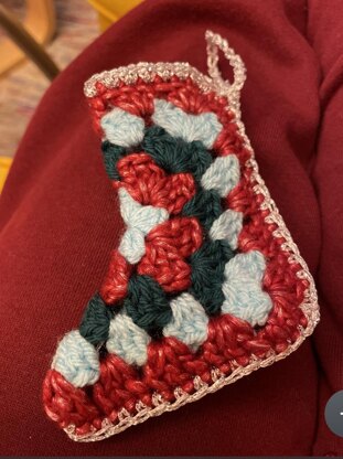 This pattern makes a lovely Christmas tree decoration or gift for loved one, friends or colleagues. A small tube of hand-cream or fun-size chocolate bar will fit nicely inside for an extra treat for someone special.