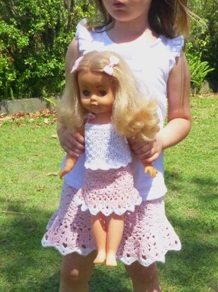 Pattern includes instructions to make a skirt to fit dolls with 7”/18cm, 9.5”/24cm and 11.5”/29cm approximate waist measurements - suitable to fit most American or Australian Girl dolls, Baby born dolls, Cabbage Patch kids and small teddies.