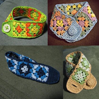 The classic granny square- this time worked in miniature with size 10 crochet thread and small steel crochet hook. Proclaim your love for all things crochet by wearing your heart on your sleeve, or in this case, your granny square on your wrist!