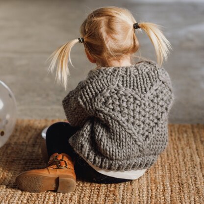 The children's version of our popular Love Bomber knitting pattern, this cute bomber cardigan features a ribbed collar, drop shoulders, balloon cuffs and heart motif on the back. The chunky yarn and large needles means this project knits up in record time!