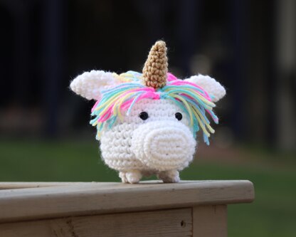 The mini unicorn measures approximately 6.5" tall (sitting) by 7.5" wide.