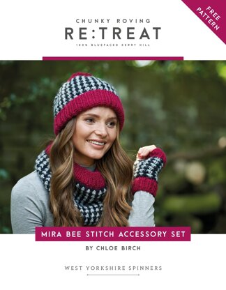 Mira Bee Stitch Accessory Set in West Yorkshire Spinners Re:Treat - Downloadable PDF is a free Intermediate Knitting pattern by Chloe Birch, available as a Downloadable PDF and includes instructions in English. Super fun to make, this pattern could be your next masterpiece!