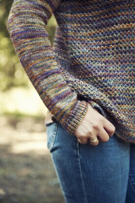 This seamless pullover is worked from top to bottom. The A-line textured body is perfect to show off those beautiful variegated skeins you keep hidden in your stash, while skinny sleeves are worked in plain St st. Named after my fabulous mother-in-law, Mira, who knows how to cake yarn like a pro.
