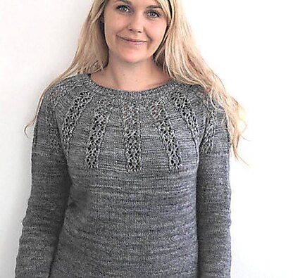 Miranda mom is the adult version of the Miranda sweater. it has the same lace yoke, is worked top down, has waist shaping and a lace hem.