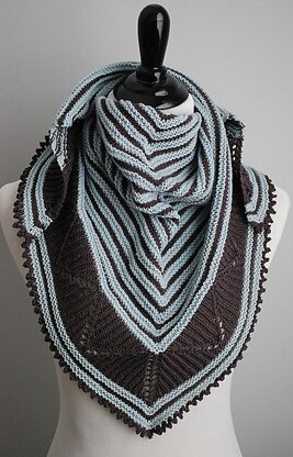 A companion piece to Leventry, Mirit is a smaller shawl using a similar combination of texture and lace. Worked from the top down, starting with a garter tab, it begins with a section of alternated garter and stockinette stripes, then transitions into a lace band that combines eyelets with ribbing. The shawl is finished with an elegant picot bind off.