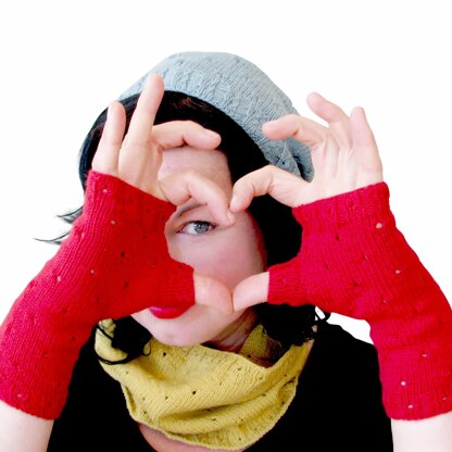 These simple yet striking designs all feature eyelet fabric and eyelet ribbing. Individually or together, they are perfect for an adventurous beginner or the more experienced knitter looking for a fast fun knit. A great choice for quick gifts or to complement your own wardrobe. The Mirri Mitts look great in a neutral or bright color. Choose between 2 sizes and 2 lengths.