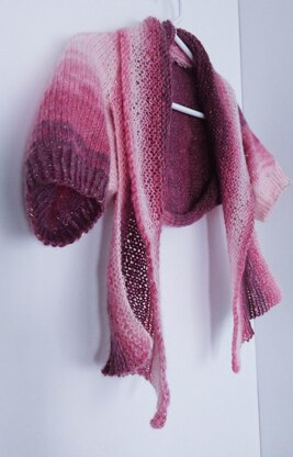 The shrug is worked sleeve to sleeve and the hem (or collar) is worked in later. No seams!