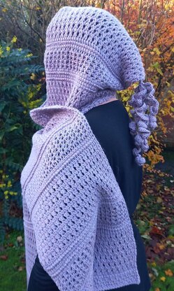 A cosy hood, a squishy scarf, and a dash of whimsy—this Tunisian crochet project has it all. Crafted in Cascade 220 Lepidolite Heather, a worsted weight yarn, the richly textured stitches come together in a long rectangle that transforms into a hooded scarf with a quick seam. Curly crochet dangles add a fun finishing flourish.. Suitable for adventurous beginners and seasoned Tunisian crocheters alike, this project makes a warm, versatile accessory that’s as enjoyable to make as it is to wear. Pattern is written in English and uses UK terms.