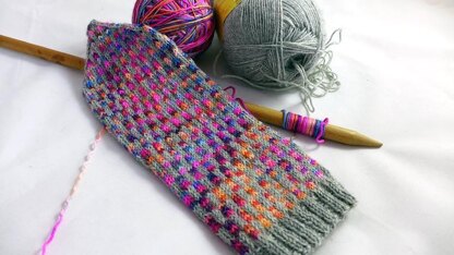 Easy mittens to get started with colorwork. Shaped like traditional Scandinavian mittens, with thumb gusset and triangular tip, but with a little special thumb pattern for more flexible thumb movement. Has charts for left and right mitten. Size is easily adaptable, just add or leave out repeats.