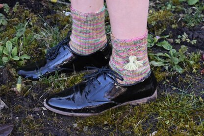 This pattern is a for socks with leaves on the side and double leaves and tassels on the top of the socks.