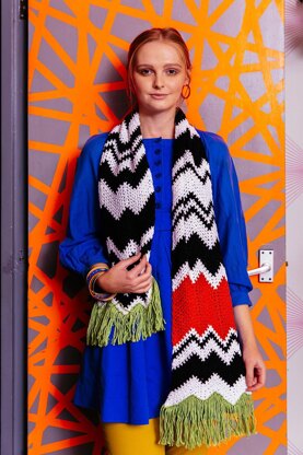 Mixed signals’ is a fun asymmetric chevron crochet scarf pattern.