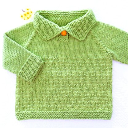 This top down seamless baby pullover starts with a garter stitch collar, then 4 short rows to elevate the back of the collar slightly, a button placket down the centre of the front, then the rest is mostly stocking stitch. Below the yoke, the simple texture is working two rounds of stocking stitch followed by alternating purl 1, knit 3 rounds on every 3rd round. Depending on our yarn & button choice, it’s suitable for little boys & girls.