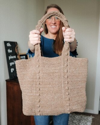 The Modbob Tote is an oversized and modern tote design that can serve many many purposes—farmers market, craft tote, carry-on/travel, diaper bag, purse, beach bag, and more. The surface crochet details that wrap around the entire tote and along the straps and handle add an additional visual touch while also providing reinforced structural sturdiness and stabilization. The optional pocket is perfect for easy access cell phone storage.