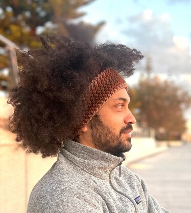 Modern crochet headband for men. This men's headband pattern uses foundation herringbone half double crochet stitches instead of the usual chain, creating more stretch in the first row (pattern includes detailed photos and a short video demonstration of the foundation herringbone stitch). Alternatively, you can use a larger crochet hook for the chain.