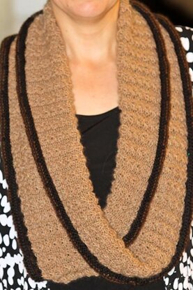 For this particular moebius I used 100% alpaca yarn, sports weight. Beige - 300 yards, Brown – 50 yards, Black – 50 yards. Circular needle size 4, 30-40 inches long.