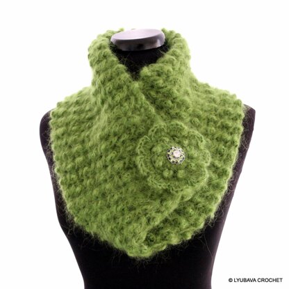 Crochet Mohair Cowl Scarf With Flower Brooch brooch easy CROCHET PATTERN with detailed step-by-step written instructions in English, in U.S. crochet terms, with many pictures showing the stitches row by row made it so much easier to work with the pattern.Skill Level: Easy to Intermediate.Materials Needed: 1 skein (100 g) of worsted 10 ply mohair yarn, crochet hook size 4.5 mm.Finished Measurements approx: the length is 16.5 in (42 cm) - half circle, the width is 7.5 in (19 cm), the flower is 4 in (10.5 cm) in diameter.