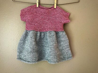 This little dress uses basic knit stitches to create a minimalist little dress for the little girl in your life. You can knit it with one or two colors. It is knit in one piece from the bottom of the front up and over to the back bottom hem. I love a basic dress for a little one and this one knit up quick with worsted weight yarn and you US 7 (4.5mm) needles.