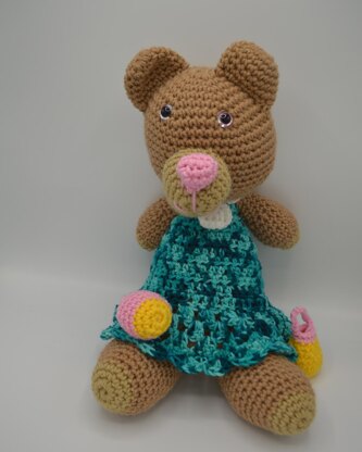 This beach bear makes an excellent project for anytime of year! Summer the Beach Bear is an intermediate pattern but quick to make! It comes with lots of photo tutorials along the way. It also comes with a few accessories. She has a beautiful dress as well as a necklace, beach ball, and her own beach bucket!