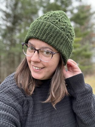 This pattern was inspired by and designed for my dear friend Molly. She asked for a super cozy beanie that would keep her extra warm in those long, cold Maine winters. I also used wool yarn raised and spun in Maine for this design, as well as motifs representing the state nickname, The Pine Tree State.