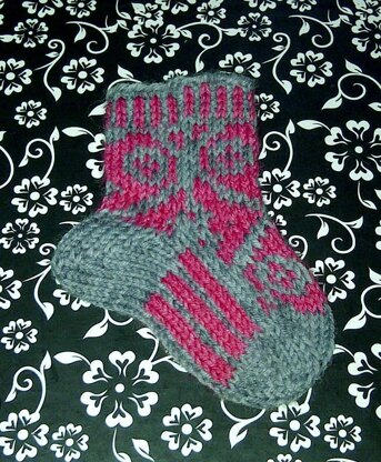 When my friend of 20 yrs had her new daughter, she requested baby socks in Pink and black. These are based off the Coeur D'Or (heart of gold) socks that I designed for Holiday Yarns several years ago.
