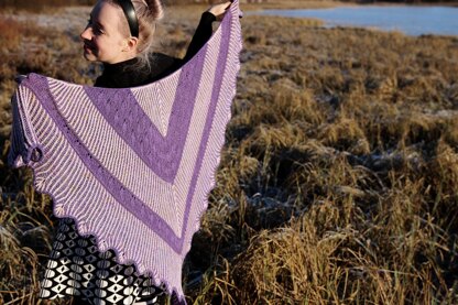 YarnLanganlumous Merino/Bambu (75 % merino, 25 % bamboo, 350 m/100 g), or other fingering weight yarn. Shown in colorways Spring in the chest (LC) and Purple rain (DC).