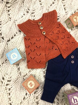 Monarch Butterfly Light has a vintage feel to it and will become an heirloom piece to be handed down from baby to baby. Top down construction, with a 3 or 4 button closer. This is designed with positive ease, so there will be room to grow into a tunic. Suitable for Fingering or Sock.