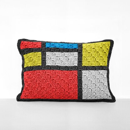 Make a bold artistic statement with this Mondrian-inspired pillow pattern, using the Corner-to-Corner crochet technique. With its iconic blocks of red, blue, yellow, white, and black, this geometric design is perfect for modern interiors and fans of abstract art.