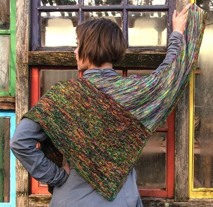This crescent shaped shawl is inspired by Monet’s “Flower Beds at Vétheuil.” I saw this painting on a recent trip to the Museum of Fine Art in Boston and was mesmerized by the juxtaposition of the heavy texture and bright colors with the smoother texture and lighter colors. I just knew I had to knit it. Like the painitng, the shawl has two distinct halves. The first section is knit with fingering weight yarn in stockinette stitch and evokes the soft, serene background of the painting. Then stitches are picked up and the second section is knit with worsted weight yarn and a heavily textured stitch pattern to evoke the heavy, freeform style of the flowers in the foreground.