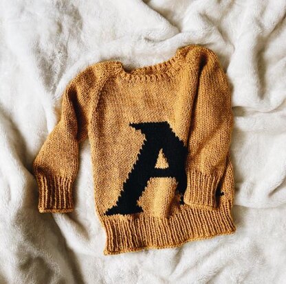 With simple top-down construction, this pullover is a challenge and enjoyable knit. The sweater is knit seamlessly from the top down. The neckline is shaped with short rows and then the yoke is knit in the round. Sleeve stitches are set aside, underarm stitches are cast on and the body is completed. Sleeve stitches are then picked up and knit down to the cuff. The main characteristic is the intarsia colorwork on the front. All the letter are with written instruction and charts
