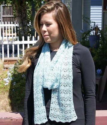 Montrose has a vintage arch design, reminiscent of gothic church windows. Knitted with pure silk, with a luminescent color of the new knit picks luminance lace yarn, the result will be breathtaking. Partnering the shawl with an elegant suite, a stunning evening dress, or even a casual cardigan will guaranty that the person wearing it is being noticed. The 16 rows of the lace pattern are described in row by row instructions and in charted form. For the intermediate lace knitter, the pattern is effortless. The finished shawl measures 77 inches long and 7 inches wide. It is light weight and will undoubtedly feel luxurious and elegant.