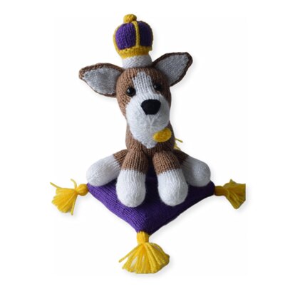 Monty is a royal Corgi, with a knitted crown and tasselled cushion ... a regal delight! Designed by Amanda Berry @fluffandfuzz, these are knitted in acrylic DK yarns on single pointed needles (not in the round). The corgi uses intarsia colour-work to make the head, and the cushion is decorated with yarn tassels. The arches in the crown are single crochet chains, and the pattern also incorporates some short row shaping. For confident beginners and above, other techniques used include casting on and off, knits, purls, increases and decreases, and seaming to finish.