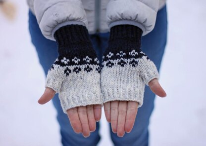 Moon Bloom fingerless mitts feature a simple yet striking stranded motif, perfect for the knitter new to colorwork or someone looking for a quick and easy project. These mitts knit up quickly and make a great gifts.