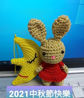 The moon is around 4 cm and the rabbit is around 6 cm by using the 1.75mm crochet hook. They can be your keychain or decoration on the Christmas Tree or even a gift to your beloved.