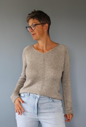 Moon River is a top down knitted raglan sweater with v-neck and short or long sleeves. The shape is sporty and elegant. I have 10 cm positive ease on my sweater (personal preferences.) Sizes: 1-7 Bust circumference of the finished knitted piece in cm: 80/83/91/102/114/120/126cm