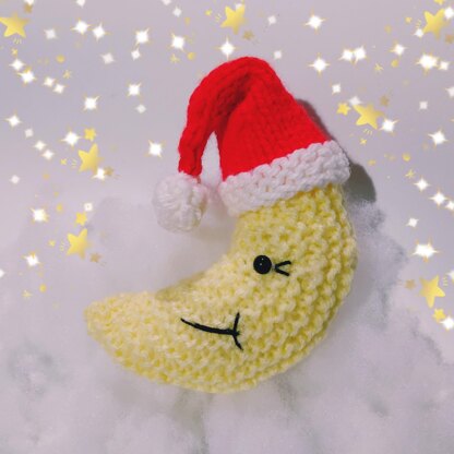 This is my smiling moon with Christmas hat, knitted flat with straight Knitting needles, easy to make with row by row written instructions and photo-tutorial. Materials: -approx. 30 grams acrylic yellow yarn (sport /5 ply) -approx. 10 grams acrylic red yarn (sport/5 ply) -approx. 10 grams white yarn (sport/5 ply) -Black embroidery thread for eyelashes and mouth -2 black 5mm. beads for the eyes -Soft polyester filling for toys or cushions -Single point knitting needles 3.25 mm. (UK 10/ US 3) -Tapestry needle