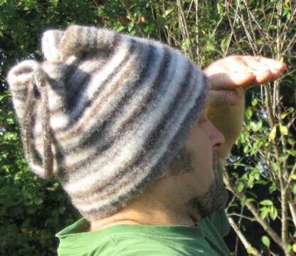 This pattern is for a felted snug - it's both a hat and a neck warmer at the same time. It is knitted in supersoft undyed Shetland wool from www.moondancewools.com