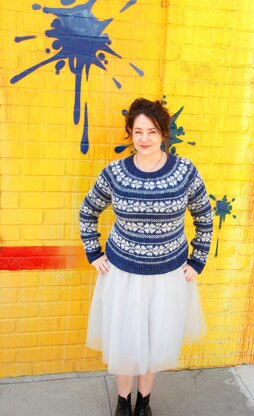 Moonflower is a pattern for a circular yoked jumper worked from the top down and in the round using the stranded knitting technique. There is patterning over the yoke, body, and sleeves. This pattern is intended for knitters comfortable working with charts including extending patterning vertically from yoke to sleeves and also horizontally as sleeve decreases are worked.