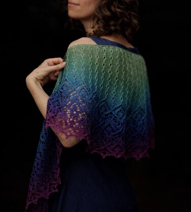 The design suits heavy lace to fingering yarn, in solid, semi-solid, gradient or subtle speckle varieties.