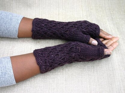 The mitts are knitted from the cuff upwards and available in 2 sizes: Medium - to fit palm circumference up to 21cm (8.25") Large to fit palm circumference up to 23cm (9")