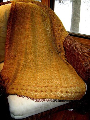 ALL BUT EARLIEST KITS SOLD HAVE 2100 YDS. THOSE KITS HAD 1800. RECOMMEND SHORTENING SHAWL HALVES BEFORE BEGINNING CENTER DIAMOND BY 20 ROWS (2 DAINTY CHEVRON PATTERN REPEATS) IF NECESSARY.