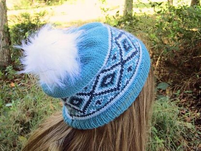Reminiscent of Art Deco mosaic tile, this unisex hat looks great with a pom or without. Fast and fun, the written pattern has a chart simple enough for even those of you new to stranded colorwork.