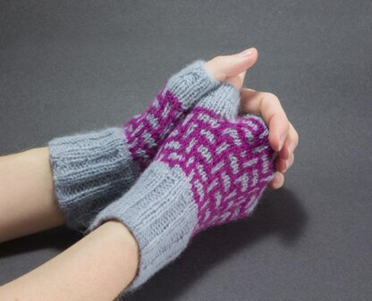These fingerless mittens make a fabulously versatile accessory for the winter months. The strong herringbone pattern adds a graphic nature and this mixed with the super soft, lightweight Angora 50 makes them both delicate and toasty warm.