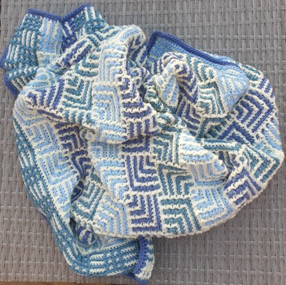 This reversable baby blanket is made using overlay mosaic crochet technique. The blanket is a double-sided pattern, therefore extra thick and warm for the cooler weather. The blanket is a lot easier to make than it looks, since only basic stitches are used! If you already know how to make a chain, single crochet and double crochet, as well as how to read and follow a crochet pattern, you’re ready to make this scarf!