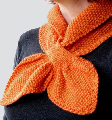 The ribbed keyhole keeps the scarflette in place while the garter stitch edging adds definition to the moss stitch. The neck section is gently tapered, so it can be folded over the throat for additional warmth and the triangular shaped ends add an understated style.